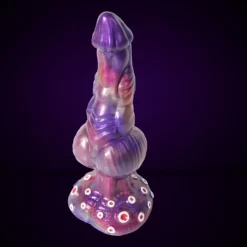 Inspired by cosmic nebulae, this intimate fantasy dildo art piece features a striking pink dildo-to-purple dildo gradient design—the tip shimmers like a crystalline cherry blossom diamond, while the base melts into a profound galactic purple, with iridescent micro-particles embedded in the transition zone to create a dreamy prismatic effect under light.